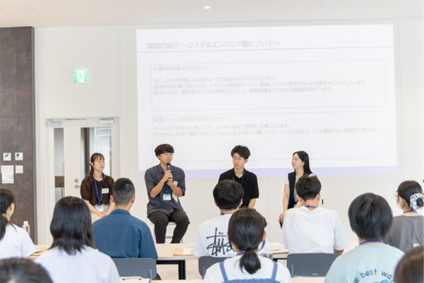 洗練された働きやすいオフィスが魅力の「日東システムテクノロジーズ」、多角的に事業を展開する「ソニアグループ」、群馬を代表する世界的企業「SUBARU」では2024年に完成した新施設「イノベーションハブ」を特別に見学。働きやすさとコミュニケーションの活性化を融合させたオフィスデザイン。群馬で叶うスマートに働く未来。洗練された空間で働く大人たちの格好良い姿に、学生たちはキラキラと憧れの眼差しを向けていました。